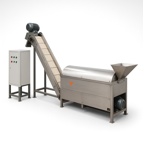 SS construction, single-phase, 60 Hz. This cashew peeling machine has a capacity of 200 Kg/Hr, 240V, with 5 Kwh power consumption.