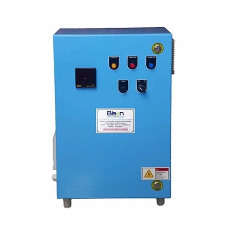 Semi-automatic mild steel ozonator machine for effluent treatment plants. Electrical 220V operation with air cooling. Manufactured in India.