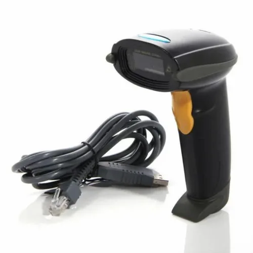 Wired, handheld CMOS barcode scanner. Operates in black and white with 100 scans/second. Powered by 24V. Bluetooth, Infrared, USB interface.
