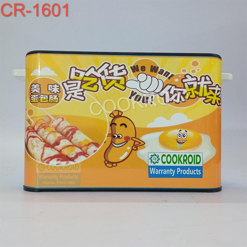 Electric egg roll machine, model 1601. Features a yellow stainless steel body, 10 tubes capacity, single phase, 1400W power, and 220V voltage.