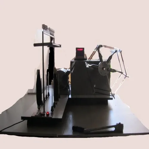 Motorized wrap reel machine, 230 V 50 cycle AC. Offers operating speeds of 150/160 RPM and a swift perimeter of 1.5 yards. Packaged in a wooden box.