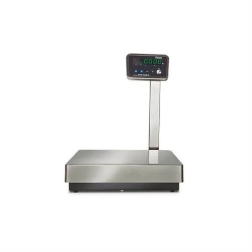 Stainless Steel (304) digital weighing machine, Model DS-515. Offers multiple capacities (6-31Kg), green LED display, RS-232, and POS connectivity. Includes rechargeable battery.