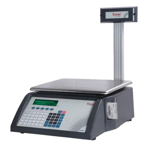 Label printing scale with 80mm/sec speed. Offers capacities of 6kg/1g, 15kg/2g, 31kg/5g. Features RS-232 and Ethernet interfaces.
