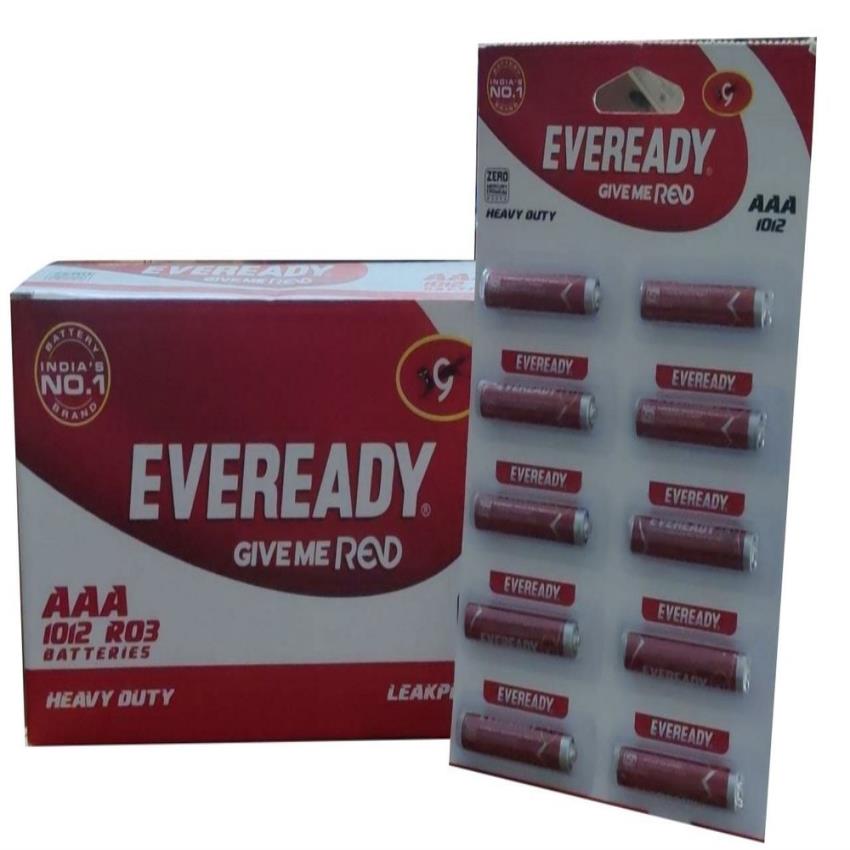 Eveready AAA 1012-RO3 battery, Lithium-Ion type. Leakproof design, manufactured in India. Operates at 220V. Minimum order: 1 box.