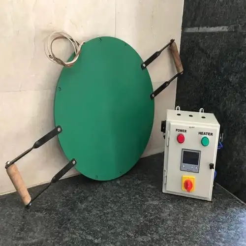 This manual extrusion mirror heating machine features an aluminum Teflon-coated surface. Ideal for extrusion welding applications, offering standard capacity and operation.