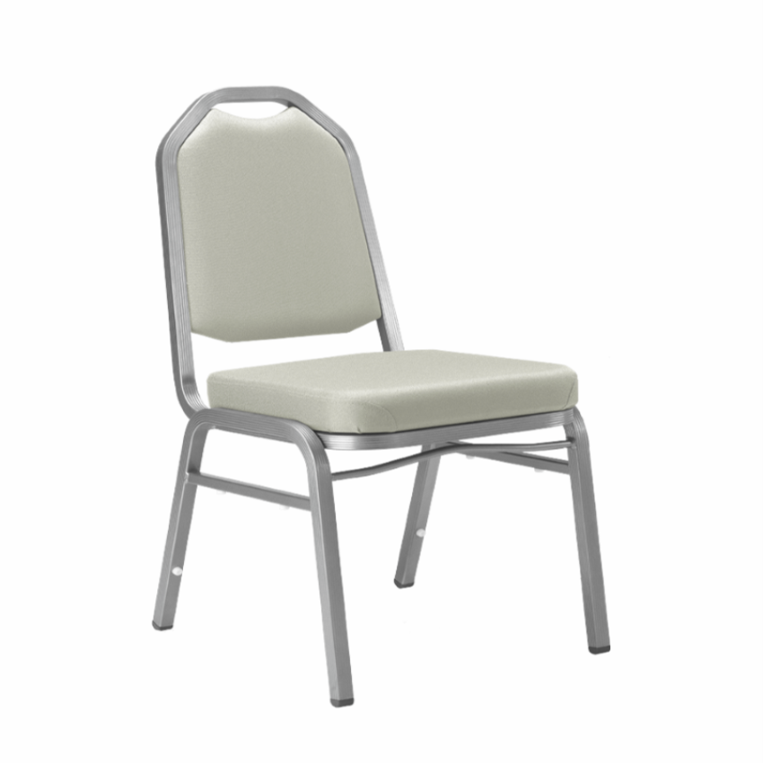 Classic banquet chair with fabric seat and frame. Features MS/AL construction, armrests, and an action back. Minimum order quantity of 100 units.