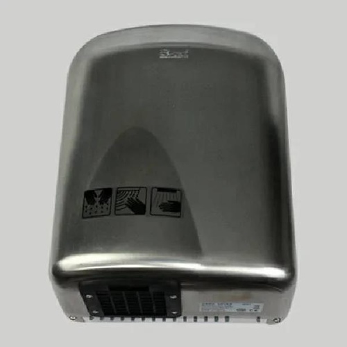 Automatic hand dryer with 1650W power and 16 m/s air speed. Features SS 304 body, 2100 RPM motor, and dimensions 225x160x282mm. Suitable for new installations.