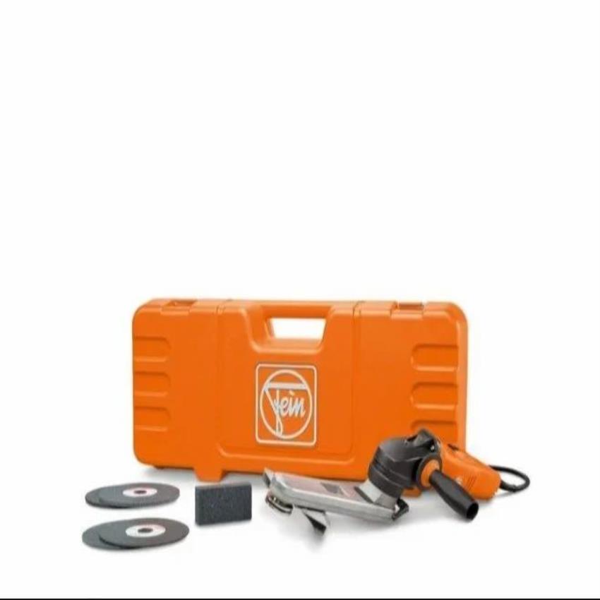 Fein KS 10-38 E fillet grinding machine. 29.5 m/sec peripheral speed, 1,350-3,750 rpm no-load speed. 150 mm tool diameter. Weighs 3.20 kg.