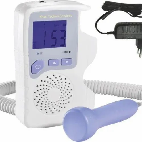 Hand-held fetal doppler with 2 MHz probe. Measures FHR from 50-230 bpm with 1bpm accuracy. New machine condition, ideal for hospital applications.