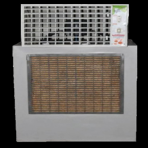 This fiber body air cooler operates on 2 HP and 230 V, covering 150 sqft with a 135 L tank capacity and wood wool pads.