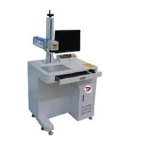 Fiber laser marking machine with 1 kVA power, 220V, 50Hz. Features 110x110mm marking area and 20W-50W laser power (1064 nm wavelength).