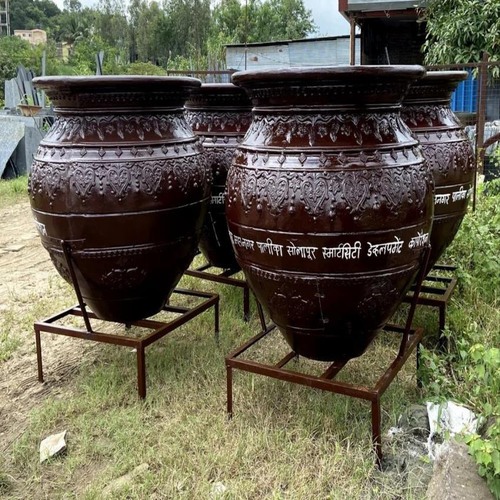 Durable, waterproof fiberglass kalash with 80-liter capacity. Features yellow and green color scheme, monkey shape, and standing structure. Ideal for garden and park use. Portable and reusable.