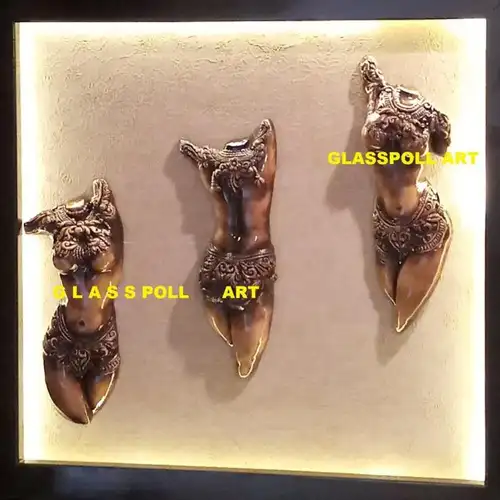 Fiberglass lady back wall art, 12 inches in size. Features a specific design and finishing for wall decoration. Produced in India, shipped in a metal crate.