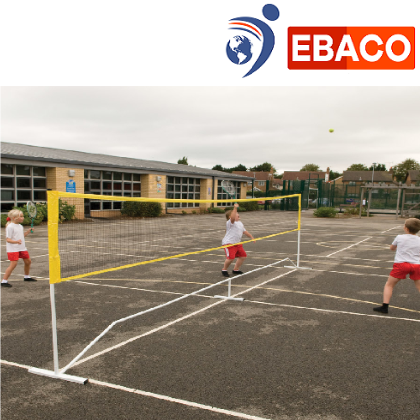 Yellow fixed badminton pole made from MS pipe for outdoor use. Features epoxy painted surface finishing and 1-year warranty against manufacturing defects.