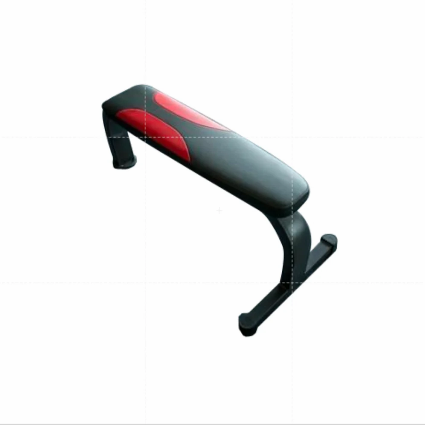 Flat gym bench made from steel tube with PVC foam seat and leather cushion. Features two-layer powder coating. Supports 96 kg max load.