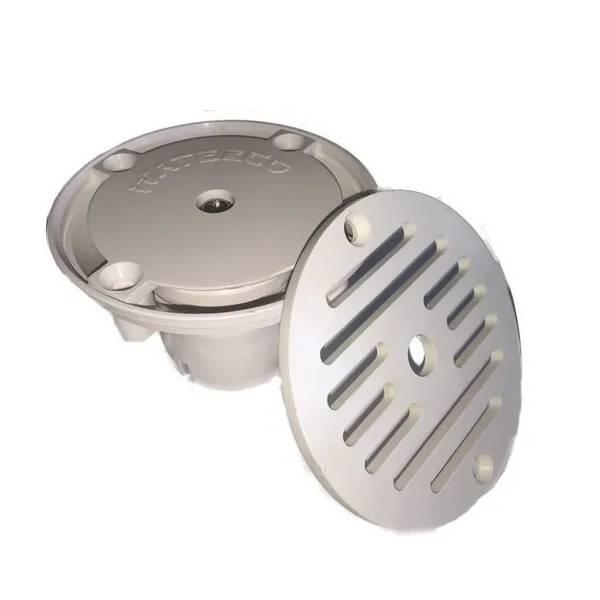 ABS plastic round floor nozzle, 2 inch inlet connection. Features durable, fine finish for optimum performance in pool water circulation systems.