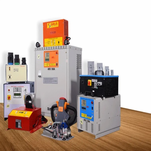 Forklift traction battery charging equipment designed for efficient power replenishment. Reliable performance for industrial vehicle operations.