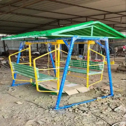 MS frame party swing with FRP canopy, 8x6 feet size. Ideal for garden use. Item code P-6, production capacity of 2 swings.