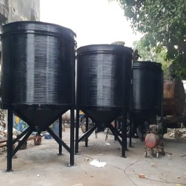 Vertical FRP conical tank for chemical storage. Features 15mm wall thickness, round shape, and red color coating. 3000 Litre capacity.