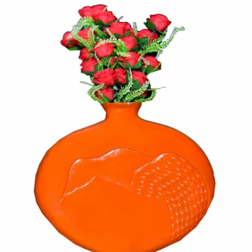 Red oval FRP decorative flower pot, floor mounted. Ideal for garden or home decoration. Made from sturdy FRP with same-day delivery option.