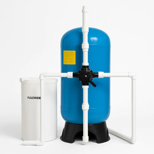 FRP fluoride removal equipment with multi-grade media filter type. Available in manual or automatic models, powered electrically. Manufactured in India.