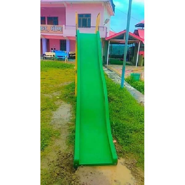 Outdoor FRP wave slide for playgrounds. Constructed from durable FRP material. Features a green and yellow color scheme. Suitable for ages 3 and above.