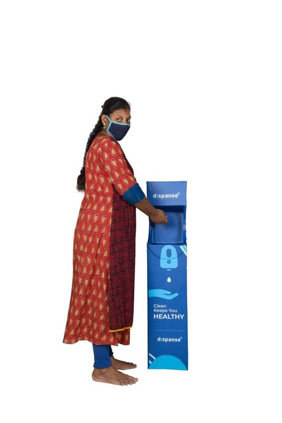 Electric floor-standing FRP dispenser, 250mm x 1200mm. Dispenses 2ml per stroke. Suitable for industrial/commercial use. Uses Ethanol/IPA with 71-80% alcohol content.