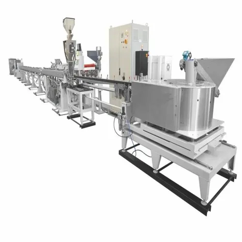 Fully automatic HDPE pipe plant with 90 kg/hr capacity. Operates on 380 V, 50 Hz. Utilizes SS material. Manufactured in India.