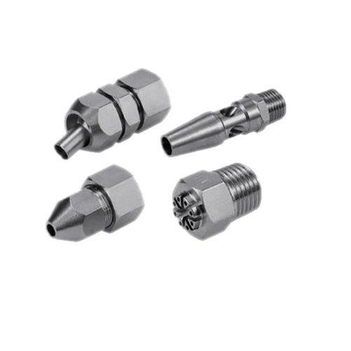Galvanized mild steel air nozzle with a working temperature range of -10 to 50 degrees Celsius. Packaged in a box.