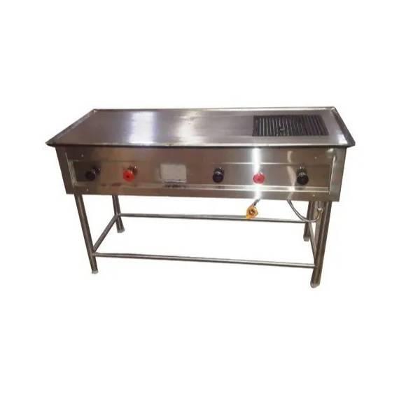 Stainless steel chapati plate with gas puffer. Features 4 wheels and dimensions of 36 x 24 x 34 inches. Fuel type: Gas.