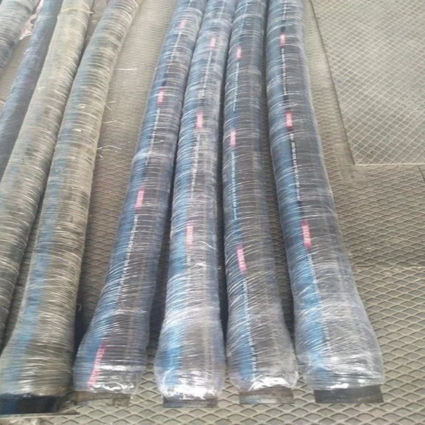 Black rubber sand blasting hose pipe with 4 layers of nylon/rayon fabric reinforcement. Available in 12m-30m lengths, 3-inch diameter. Working pressure 10-15 KG.