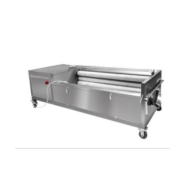 Batch type roller brush washing equipment for commercial use. Features 7 rollers, 100mm drum diameter, 6ft drum length, and SS304 contact parts. 240V.