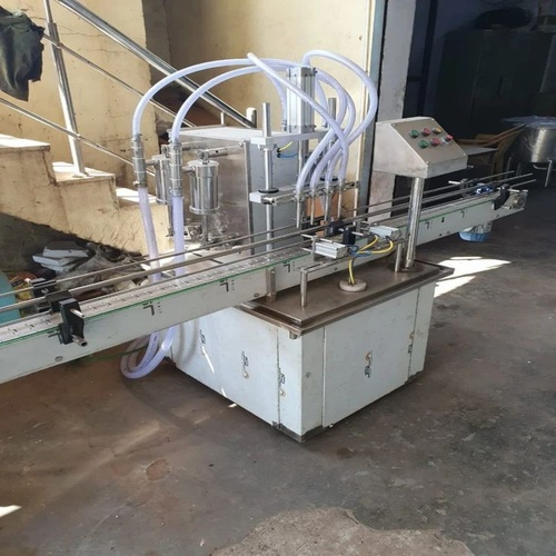 Automatic 3-phase glass bottle water filling machine. Features 4 filling heads and a production capacity of 60 bottles/min. Operates on 230V, 50Hz with 5 HP consumption.