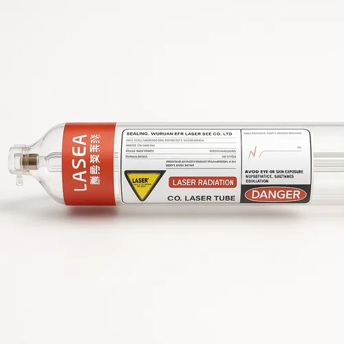 Glass CO2 laser tube for laser machines. Available in 40W-50W capacity, with a rated power of 50W. Operates on 40W/50W voltage.