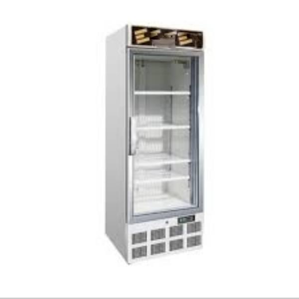 Single glass door upright freezer with model EFGV 425. Features a vertical design for efficient space utilization. Ideal for commercial storage and display.