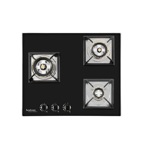 Gloria Plus 3B 60 CM built-in hob made of glass. Features 3 burners for domestic use. Country of Origin: India.