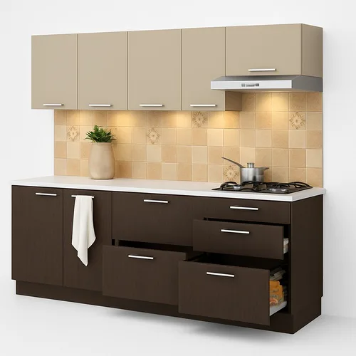 Modern wooden modular kitchen with gloss finish and hinged doors. Residential service location type with 1-5 years warranty. Delivery in 20-30 days.