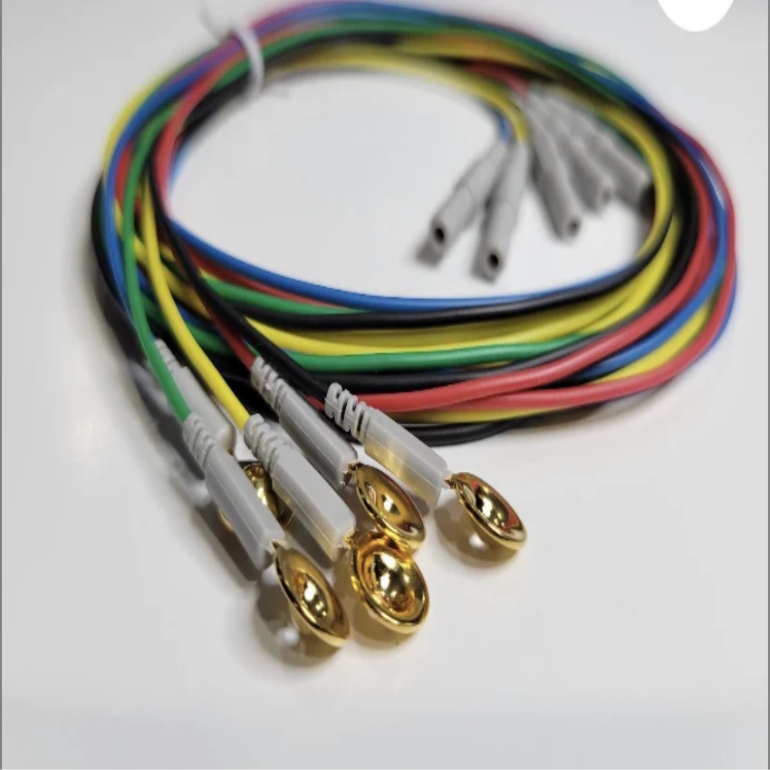 Dry gold cup EEG electrodes with wired interface. Features Alpha frequency band, 200 mV input range, 24 channels, 4 poly channels. Offers 24 hrs operational time. Compatible with any sampling rate.