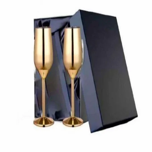 Set of 2 gold plated champagne flutes. Crafted from glass with a distinctive gold finish, packaged in a box for secure storage and gifting.