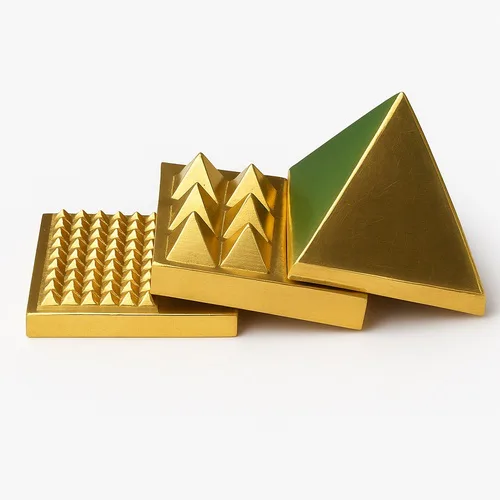 Golden brass Vastu pyramid for Vastu applications. Made from durable brass material. Available in a golden color. Ideal for interior decor and energy balancing.