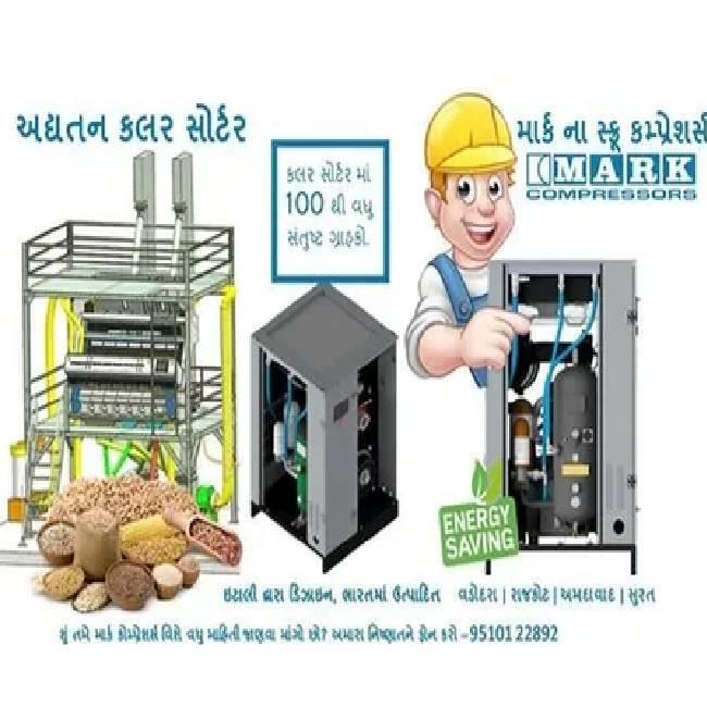 Automatic grain color sorter, three-phase 220V. Features bi-chromatic camera for 98% accuracy, with 3.5 Kw power consumption.