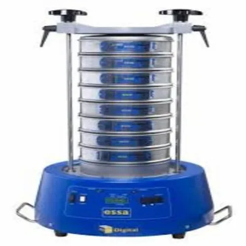 Indian-made circular sieve shaker, 50Hz, 230V. Features 1-year warranty and door delivery. Wooden packaging available as per buyer requirement.