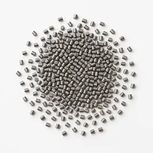 Gray, cylinder-shaped steel cut wire shot with a size of .8 mm. Hardness is 48-52 HRC. Packaged in 25 kg poly bags.