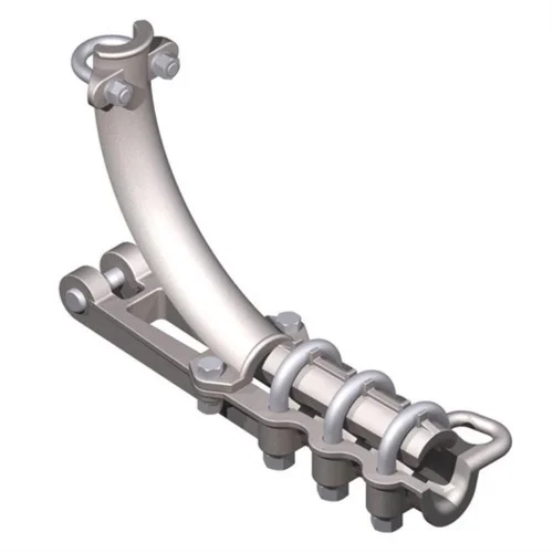 Aluminum dead end fitting in grey. Designed for secure conductor termination and strain relief in overhead power line applications. Lightweight and weather-resistant.