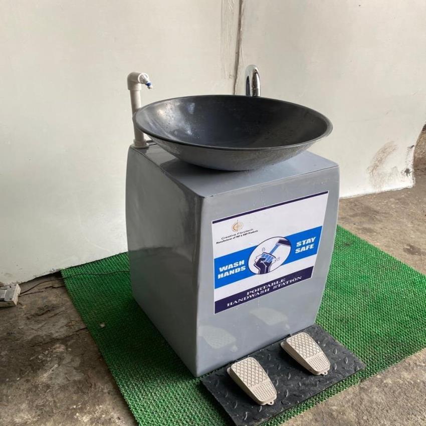 Grey FRP body premium handwash machine with a single sink. Dimensions: 500mm L x 500mm W x 950mm H. Minimum order quantity is 1.