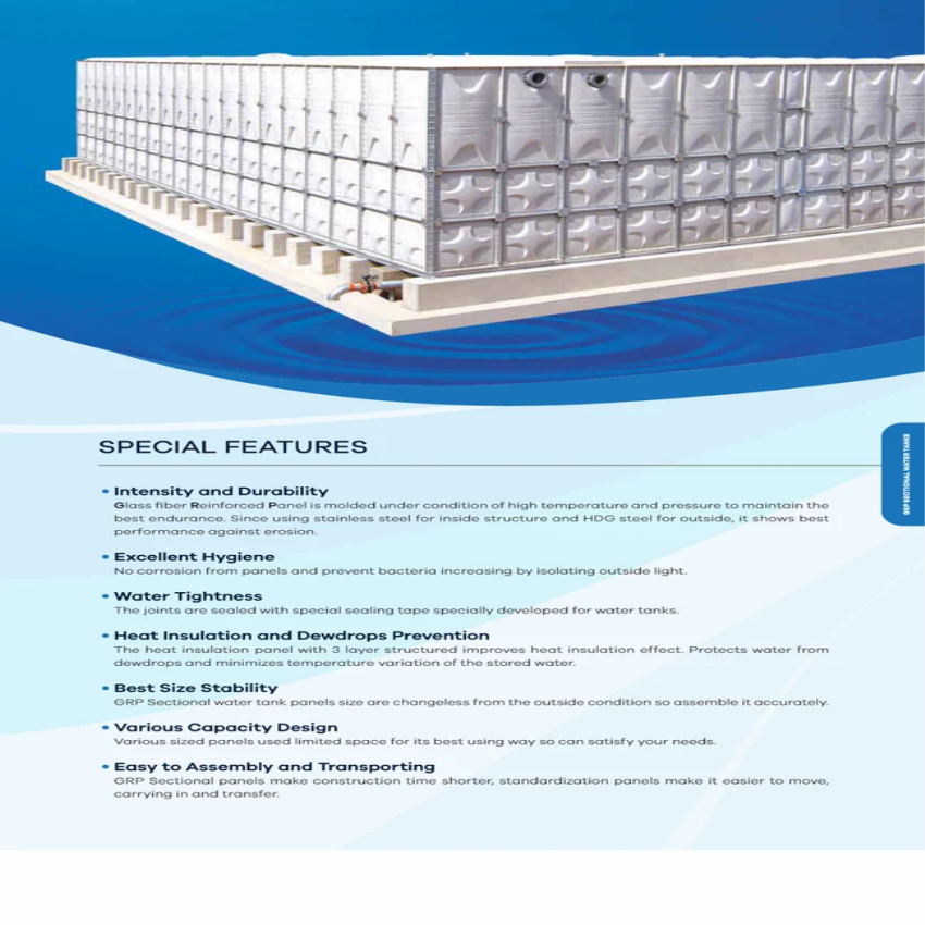 GRP water tanks for industrial use, available from 15,000 to 50,00,000 liters. Square and rectangular shapes, white color, lightweight, and easy assembly.