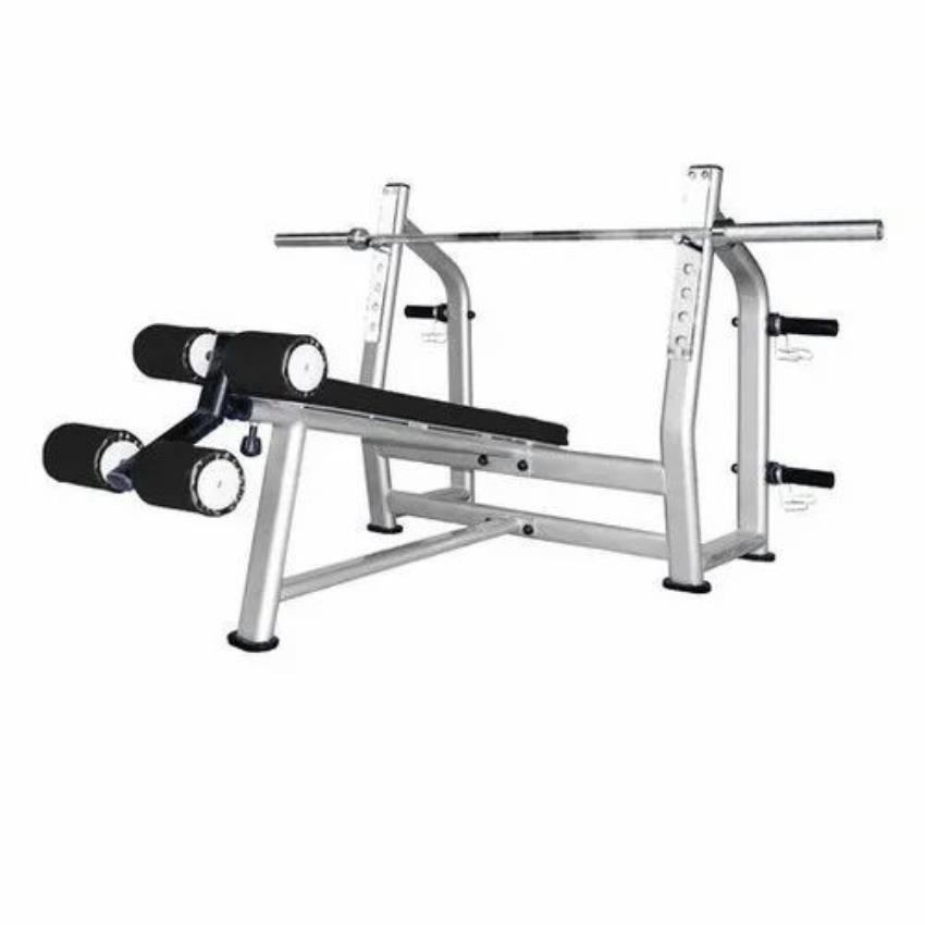 Decline Weight Bench for gym use, with a weight capacity of 100-150 Kg. Made from mild steel with a paint-coated surface finish. Height measures 1605 mm.