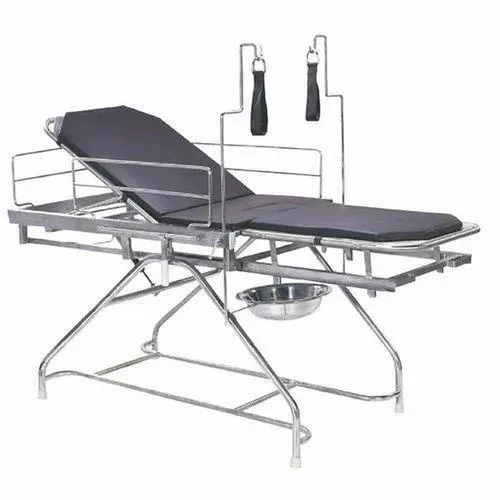 Adjustable gynecological labor table designed for patient comfort and medical procedures. Features include stable construction and ergonomic design for efficient healthcare delivery.