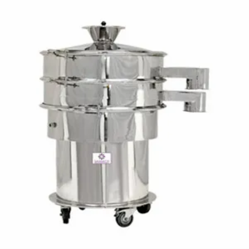 cGMP compliant flour sifter machine. Designed with gyratory motion principle. Features double eccentric weight for efficient sifting. Low capital cost.