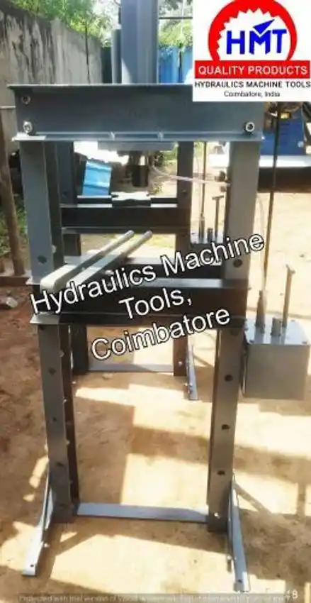 Semi-automatic mild steel H-type hydraulic press. 5-100 ton capacity, 150mm ram travel, panel board and hand control. For industrial use.